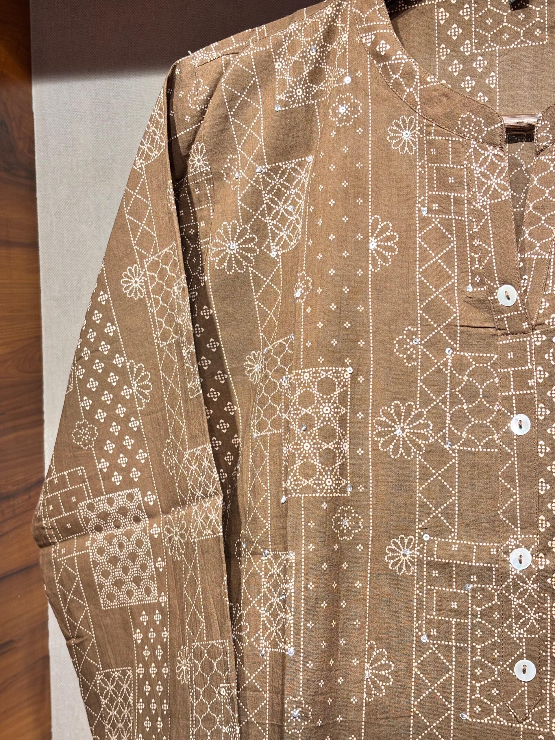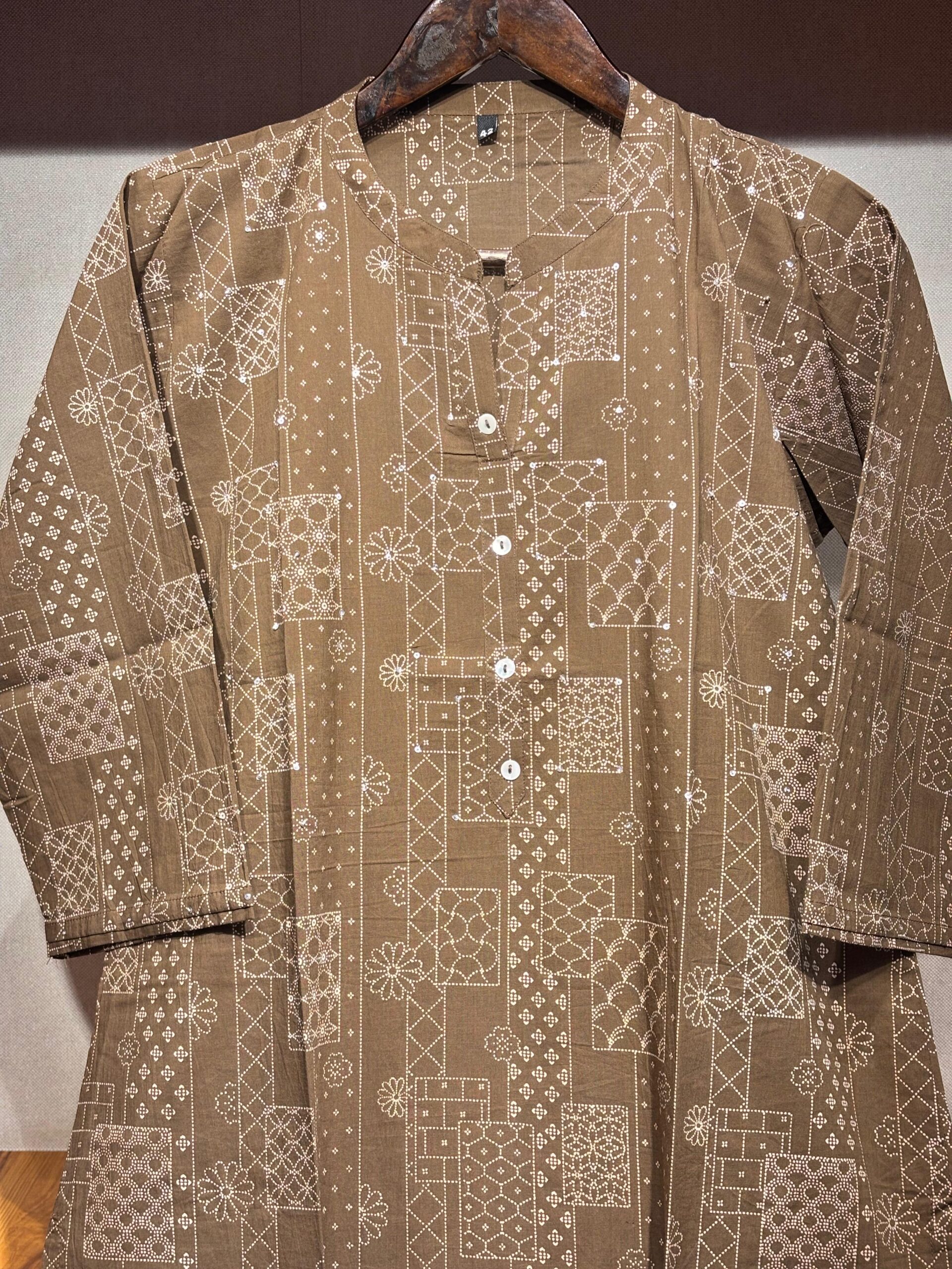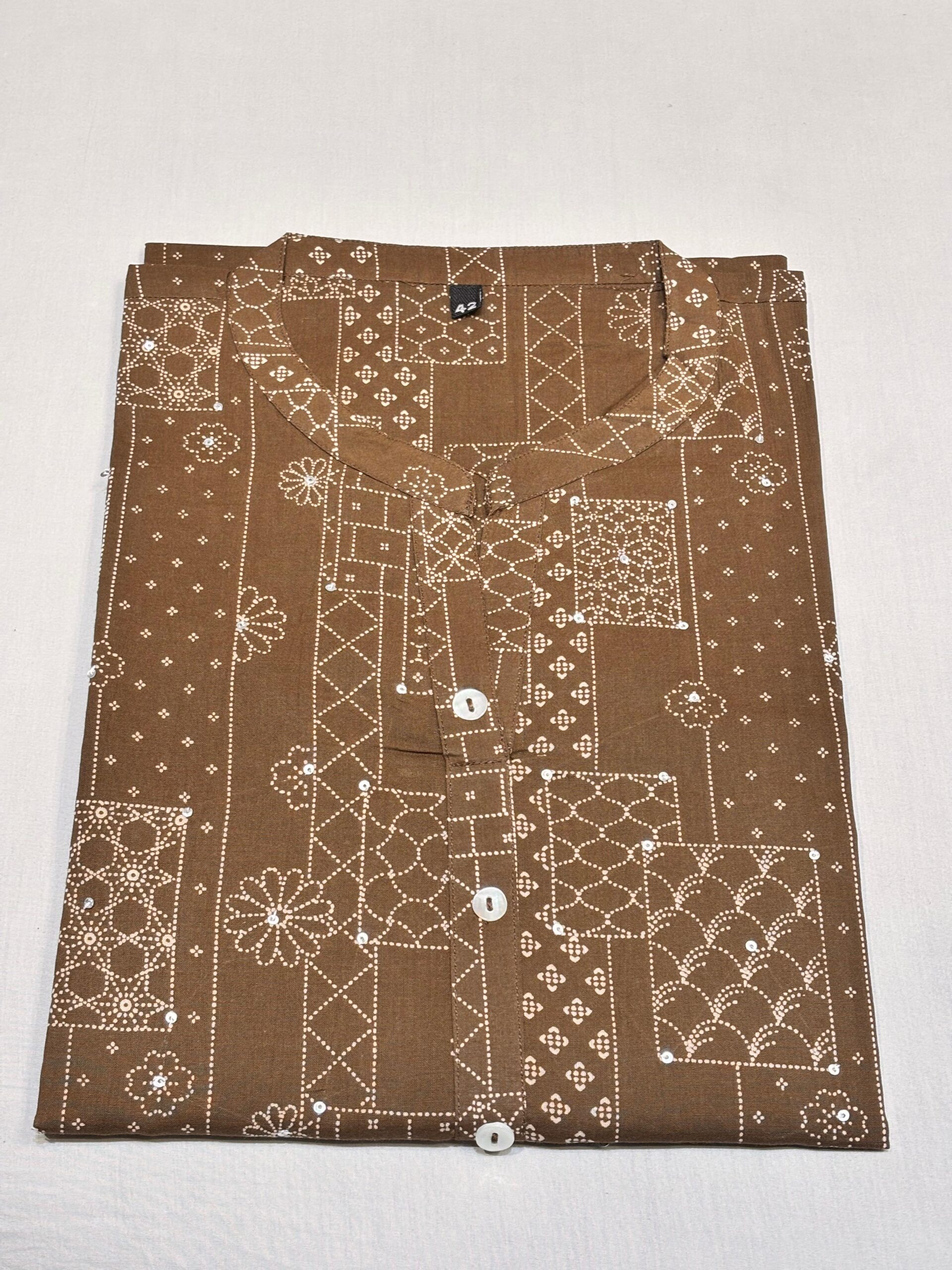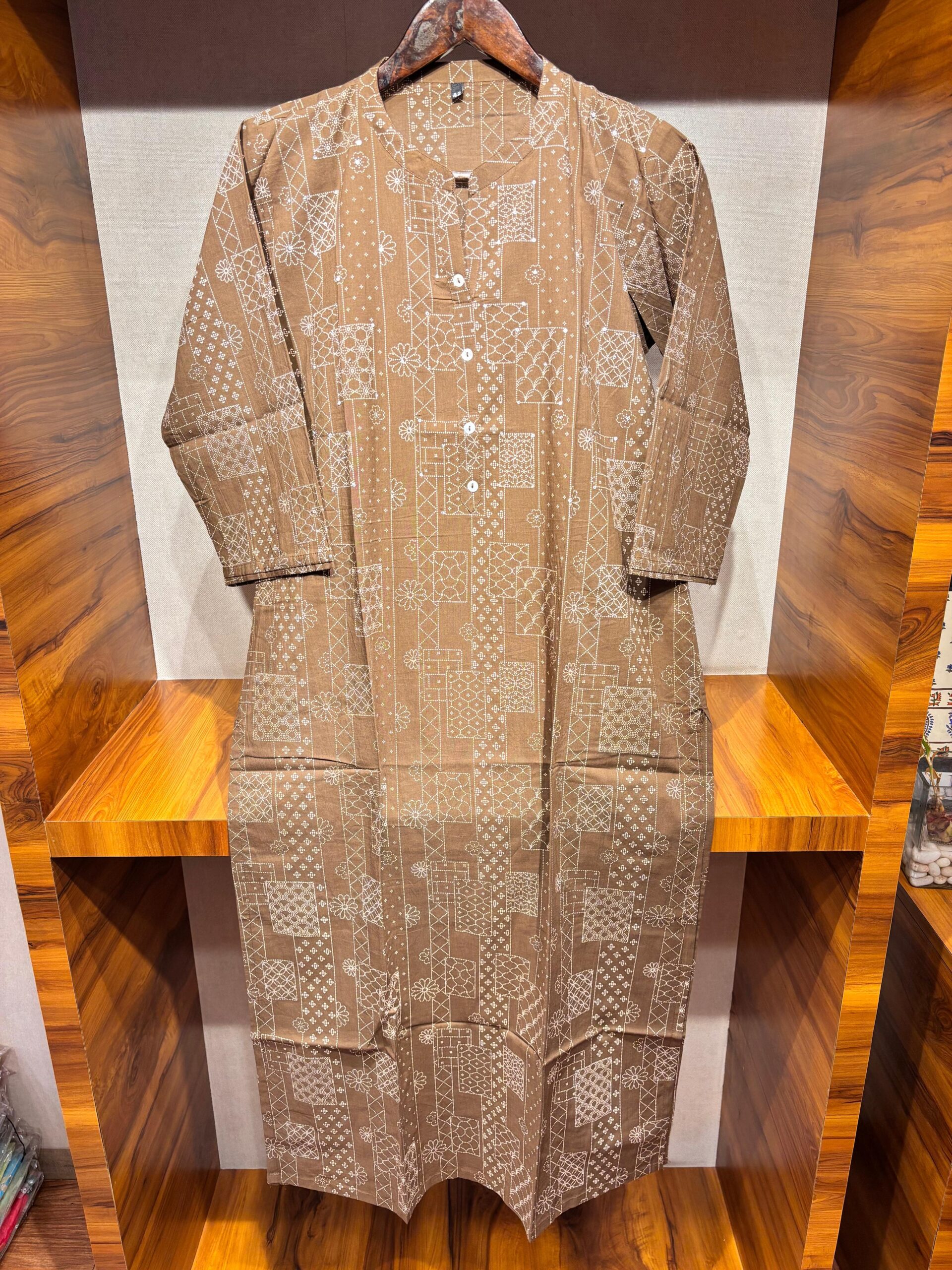 Add understated elegance to your wardrobe with this Yunara brown cotton kurti featuring delicate prints. Soft, breathable, and perfect for casual or festive occasions.