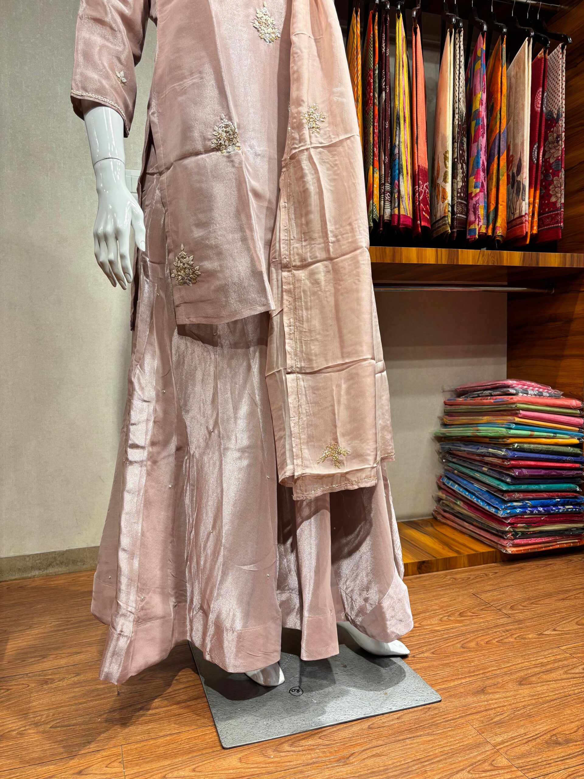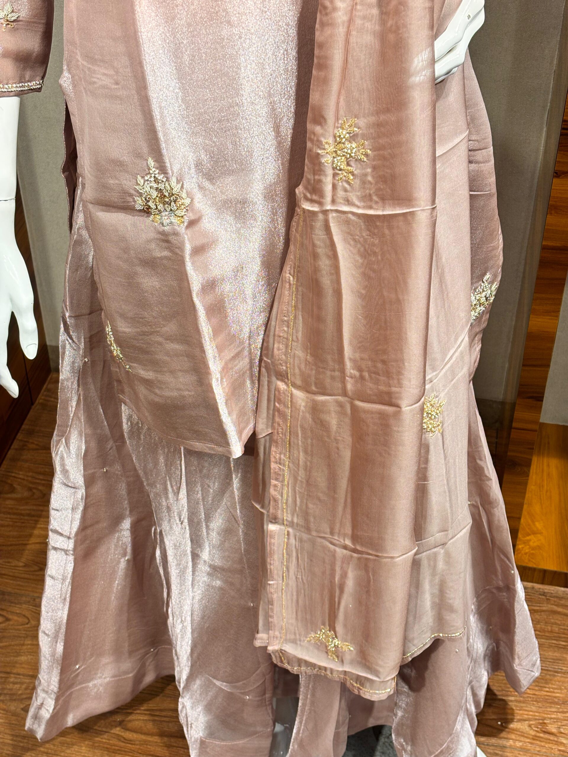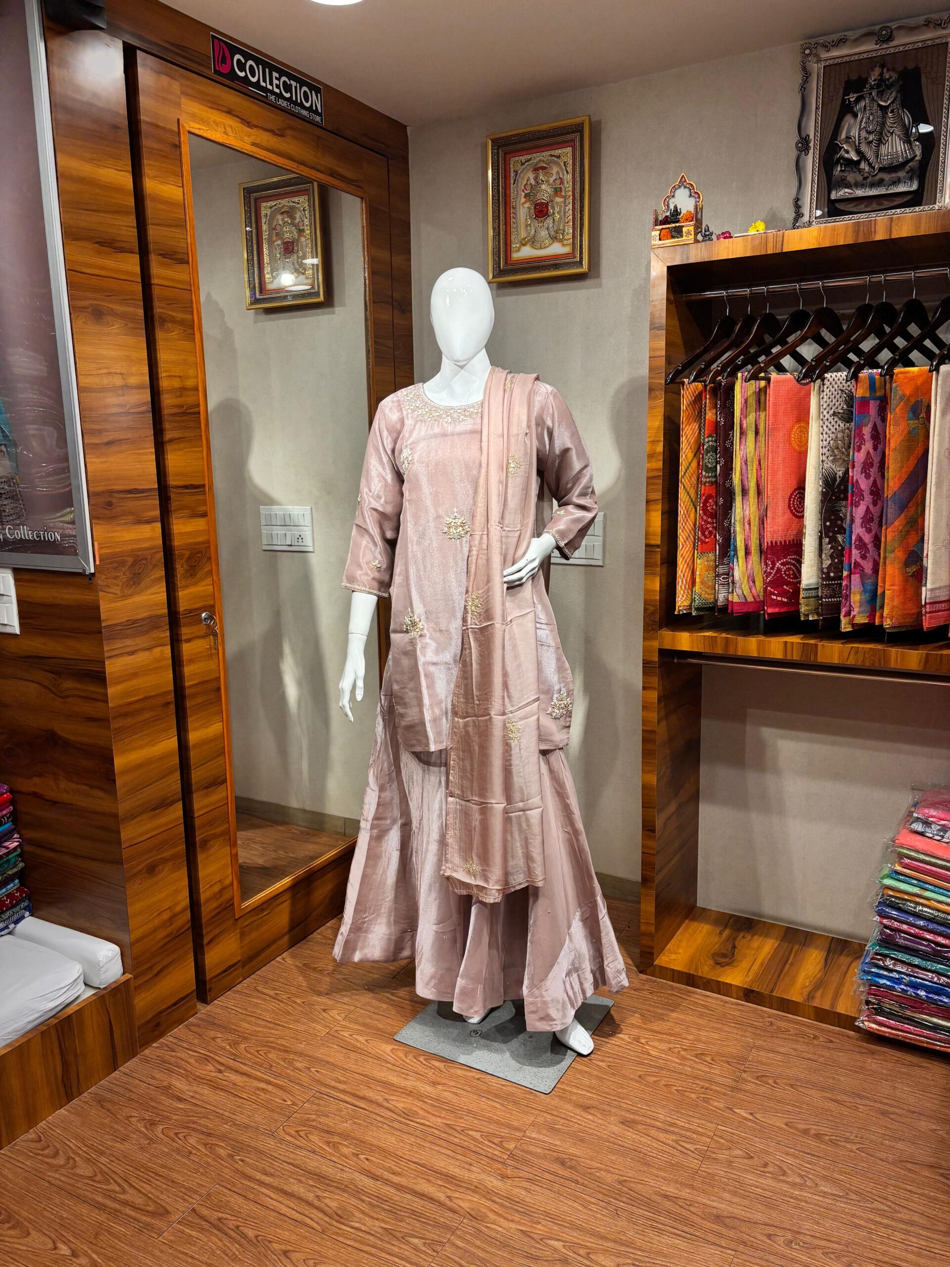 Kurti/Choli – Designed with fine cuts and adorned in Zardosi hand embroidery, adding richness and depth to the outfit.